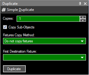 If the objects contain sub-objects select if these are copied too. Note: It is not possible to create new fixtures within dot2 3D ! If fixtures are selected to duplicate it is possible to select 'Use other Fixtures’. Select the 'First Destination Fixture’ inside the list box. After pressing the 'Duplicate’ button the 'First Destination Fixture’ will be moved to the X,Y,Z position of the source fixture and so on. This mechanism is useful to create symmetrical stage sets. For example you have to setup the number of all used fixtures inside the set. Do the setup for the left side of trusses and lanterns. After that you can duplicate the left side and mirror it to the right side. |