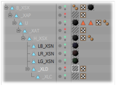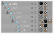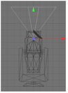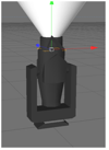 Similar to the rotation axes the position of the beam (cone) is marked with a square. The center of the square marks the origin of the cone (e.g. _XB). The normals mark the direction. The position inside the fixture body can be determined with an auxiliary cone that is placed temporarily into the body. The radius (r) of the cone can be calculated with the following formula: r = tan([max. open radius / 2]) * [height of the cone]Normally the cone uses the complete lens hole of the fixture. The square is placed at the top of the cone: |
