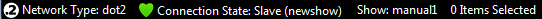 dot 2 3D has joined a session as a slave. - Show: Displays the name of the show file.