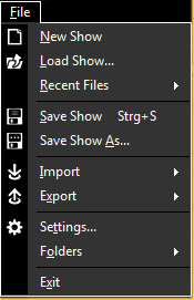 | Folders | The following options are available: - Open show folder in explorer - Open gobo folder in explorer |
