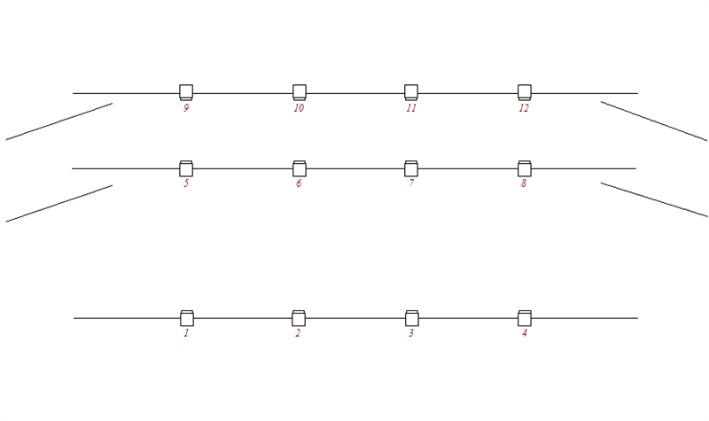 We are going to pretend we have a small black box theater and we are going to add some dimmers. We got 12 dimmer to play with. This is our basic plot: