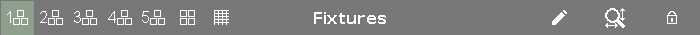 The 5 icons with numbers are 5 different views called Fixture Layout Views. Here you can arrange the fixture icons the way you like it. They can contain all or some of the fixtures. But each fixture can only be once in each of the 5 layout views.