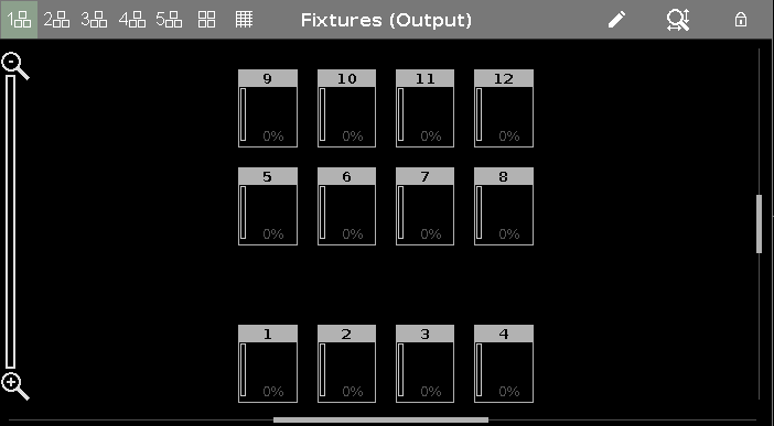 This is the Fixture Layout view. You can make five different views. They can each contain all or some of your fixtures.