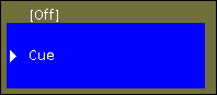 Notice the brighter color and the blue marking of the cue. This indicates that the executor is active and that the cue is active.