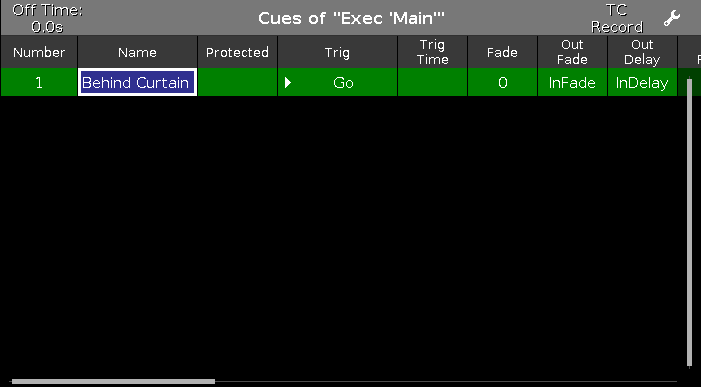 - 'Trig' is the action that triggers the execution of the cue. The default trigger is "Go", but there are other possibilities and we are going to look at them later.