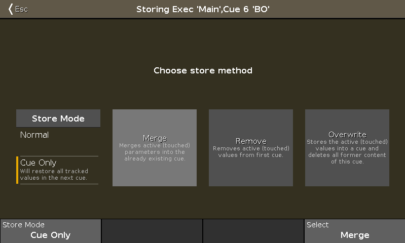 We could have turned off the protection on cue 7. Done all the updates in cue 5 (tracked into cue 6 and 7). taken the fixtures to 0% and stored the values in cue 6 but in stead of doing our normal store and then select the "Normal" Store Mode, we could have used the "Cue Only" Store Mode.