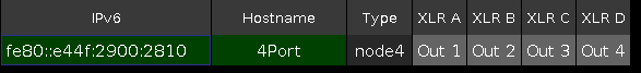 Here you can see the connected node output 4 universes. You can change which universes each port is outputting by selecting the cell and tapping the right side encoder.