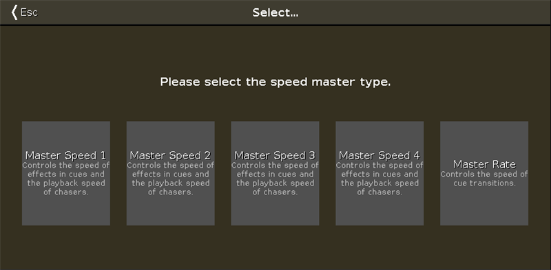 A Master Speed fader can be used to dynamically adjust the speed used by chasers and effects stored in cues.