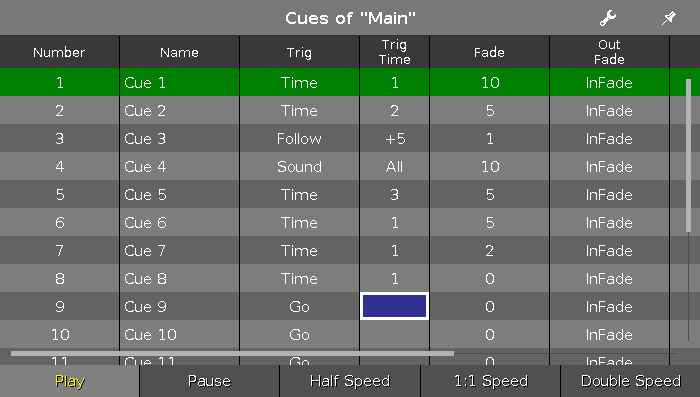 - Executor: Press the executor button on which the cue list is stored you like to jump in.