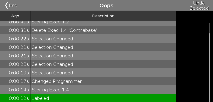 To go to the Oops View on screen 1, press and hold the Oops. The Oops View opens on screen 1.
