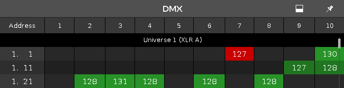 If an attribute has a DMX output, the values starts with 1 (dark green) and goes up to 255 (neon bright green).