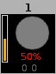 Displays additional to the dimmer bar the dimmer value of 50 % in red (= programmer values), and 0 0 for the position of pan and tilt values.