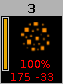 Displays additional to the dimmer bar the dimmer values of 100 % in red (= programmer values), and 175 -33 for the position of pan and tilt values, and the gobo wheel.