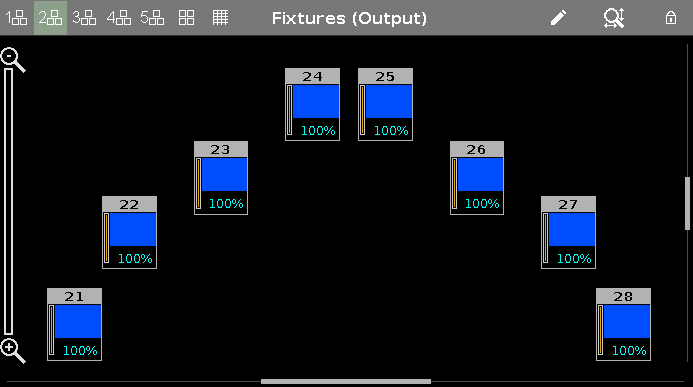 This is a graphical layout of the patched fixtures. The symbol view displays always the playback output.
