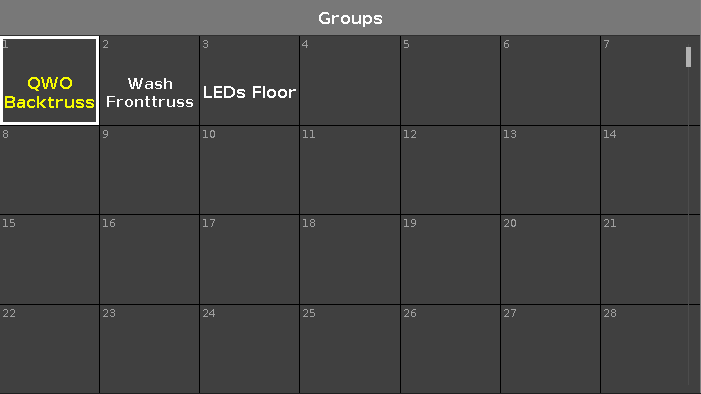 To scroll in the groups view left or right, press and turn the encoder left or right.