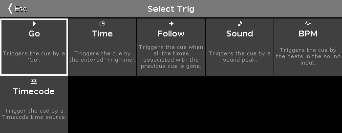 If the cue trigger is set to sound there are special sound trig time buttons in the calculator available. For more informations see Calculator.