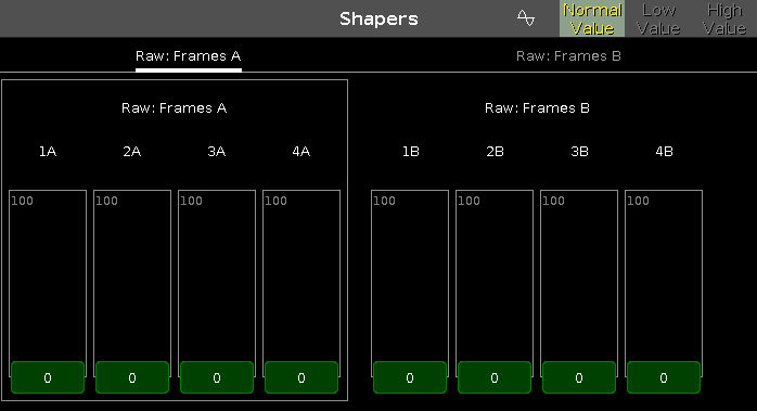 In the raw shapers view, you control the raw shapers values in natural values (0-100) of the selected fixture type.