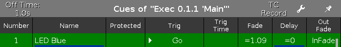 If the exec time is used, the fade and delay times are indicated by an equal sign =.