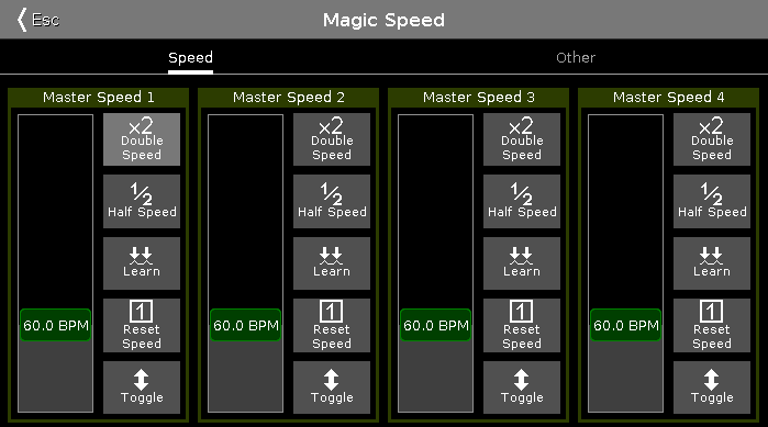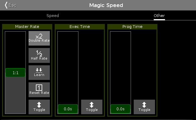 To see Master Rate, Exec Time and Prog Time, tap Other in the title bar of the Magic Speed View.