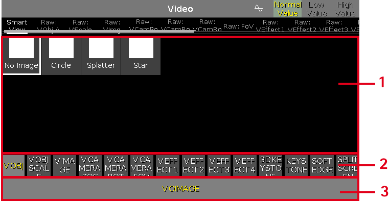 The Video Preset Type View is fragmented in the smart view and raw video views. The raw video views are different, depending on the fixture type.