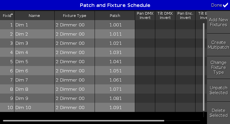 To patch a few fixtures and with a start address of x.xx1, select a patch offset of 10.