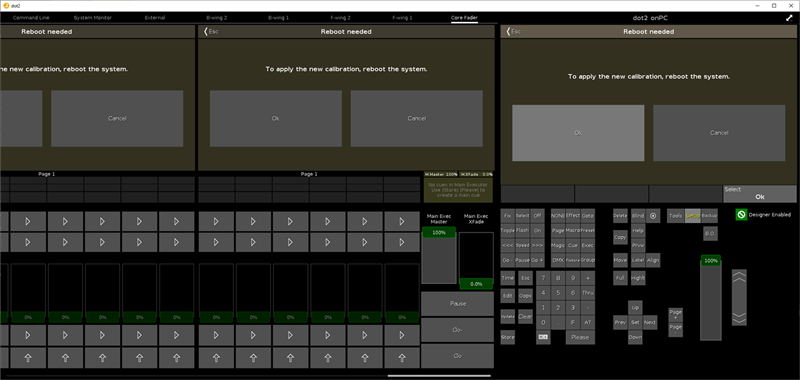 If the touch screens do not fully work, open the Calibrate Screens Window using the encoders.