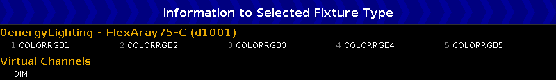 It displays at first, manufacturer, device name and mode in brackets, of the selected fixture type.