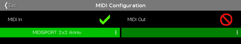 In the MIDI Configuration window you select the MIDI In and MIDI Out source.