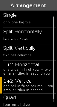The window is fragmented in the arrangement column on the left side, and the preview view of the selected arrangement.
