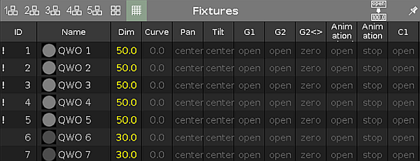 If at least one attribute of a fixture comes from an executor with the Super Priority (!), the fixtures are displayed with an exclamation mark on the left of the ID numbers in the fixture sheet.