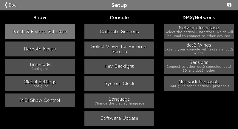To open the Setup Window press Setup on the console.