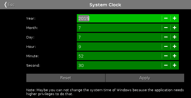To reset the system clock to the last applied system clock, tap Reset.