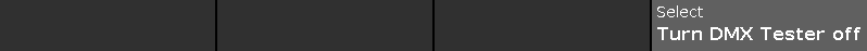 Turns the DMX tester off. DMX tester values are displayed with a red background in the DMX view.