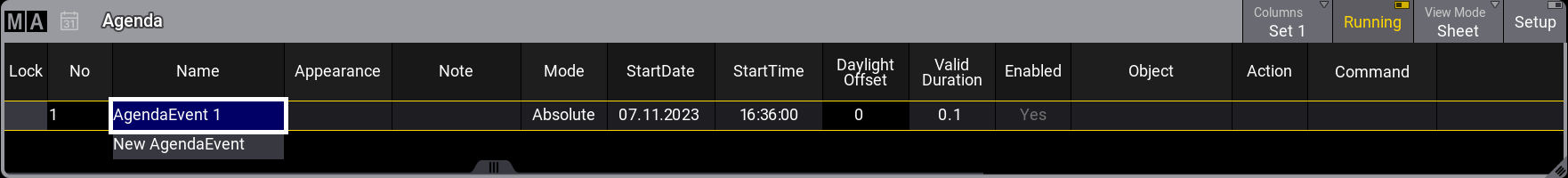 grandMA3 User Manual » Agenda » Create an Agenda Entry