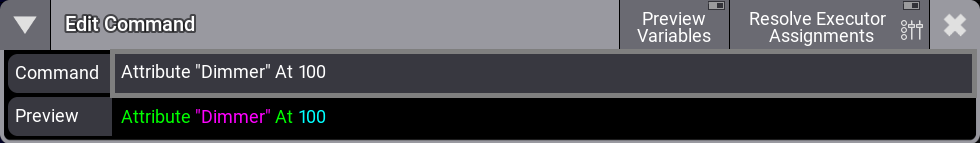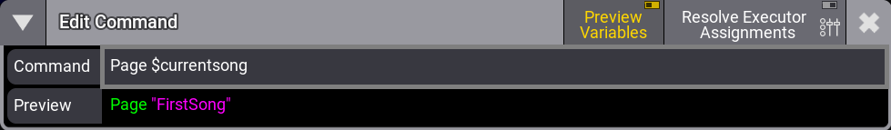When editing a command, for example, in a macro, a cue, or an agenda event, the Edit Command pop-up opens: