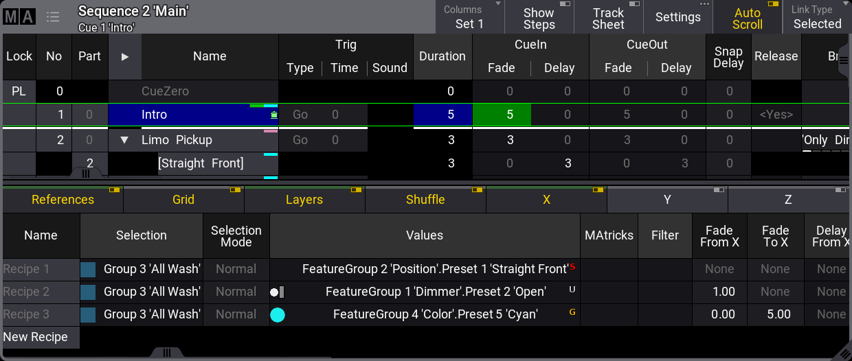 grandMA3 User Manual » Cues and Sequences » Cue Recipes