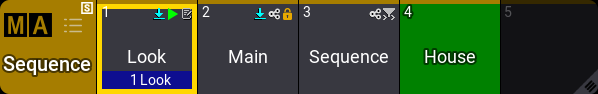 Two sequences can be connected and share the cue data. If a sequence shares data with another sequence, then it has a small icon (