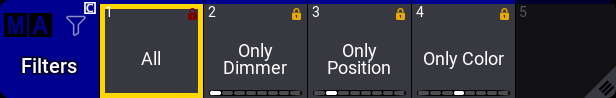 The filters are one filter that contains all attributes and layers and one that only contains the dimmer attributes and all layers.