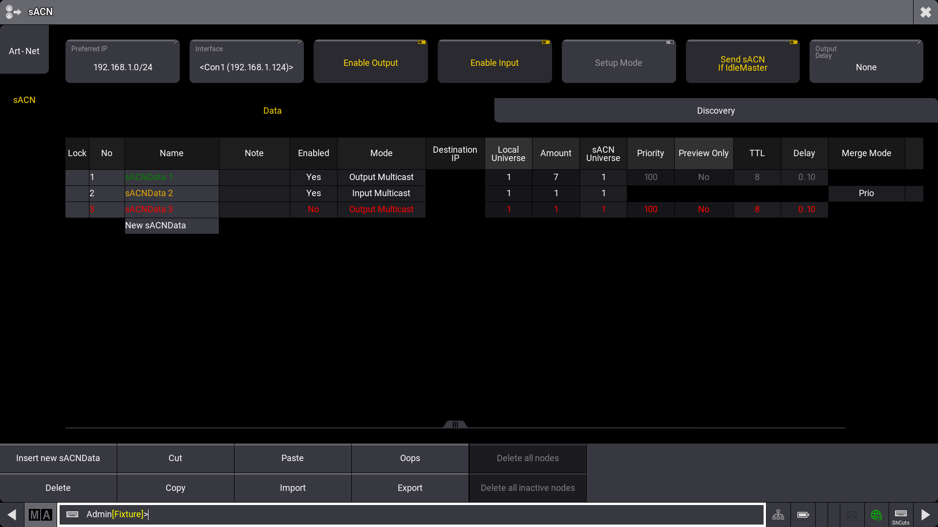 This On/Off button must be On for the master to transmit sACN. Data also needs to be configured for output - read more below. - Enable Input: