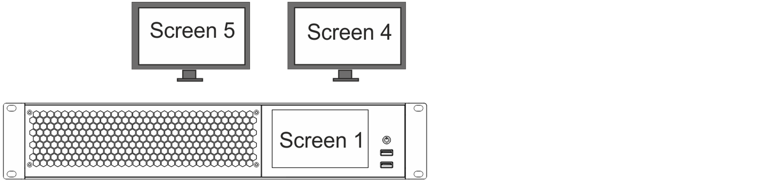 The grandMA3 replay unit includes two connections for optional external monitors. The numbering of these screens is detailed in the following table: