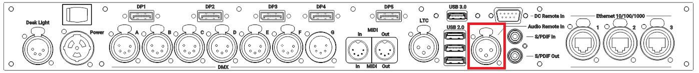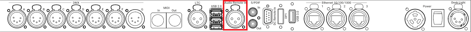 - Connect the 3pin XLR sound source cable to the Audio Remote In connector on the rear panel.