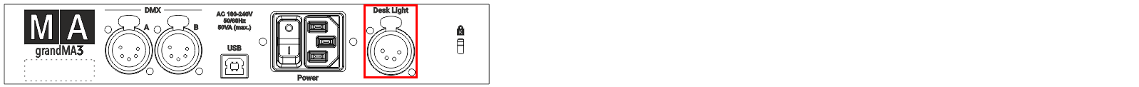 - Connect the 4 pin XLR connector to the desk light connectors on the rear panel.