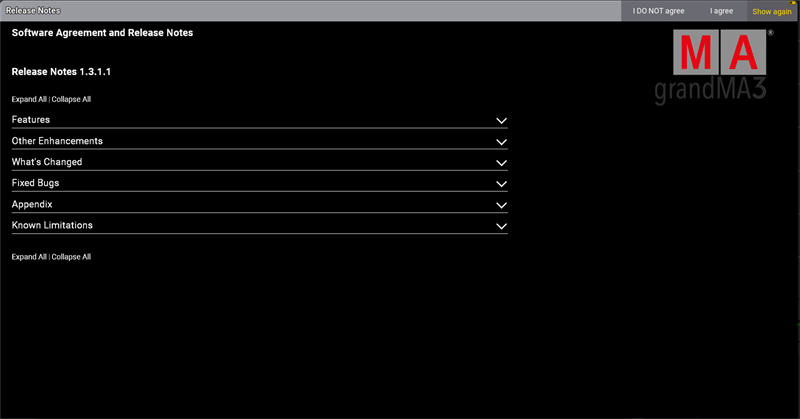 - If you do not want the software to show the Release Notes again after booting, tap Show again to disable.