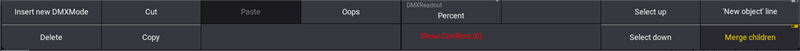 When importing or editing fixture types, it can happen that fixtures are displayed in a specific font color. The specific font color displays an existing conflict. The button Show Conflicts provides more information about this conflict. A conflict can be, for example, a DMX channel overlap!