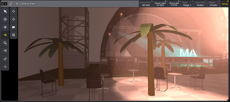 A way to make a stage more realistic is to use environmental fixture types. These fixture types are anything other than lighting fixtures, such as stages, trusses, seating, or scenery.