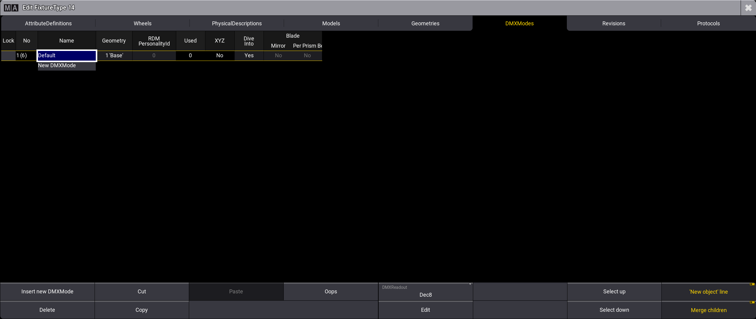 Edit again. The DMX Channel Editor with a tree structure opens: