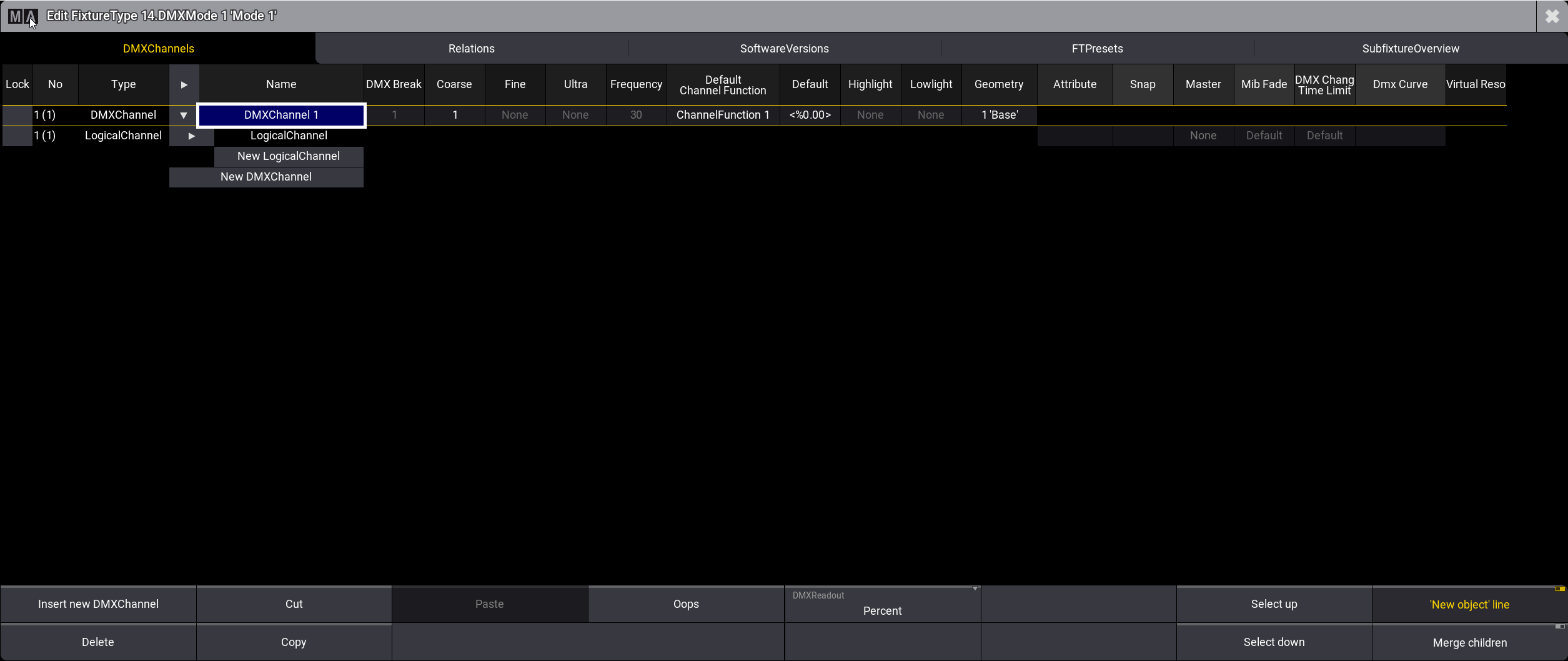 Tap New DMXChannel and tap Insert new DMXChannel. New