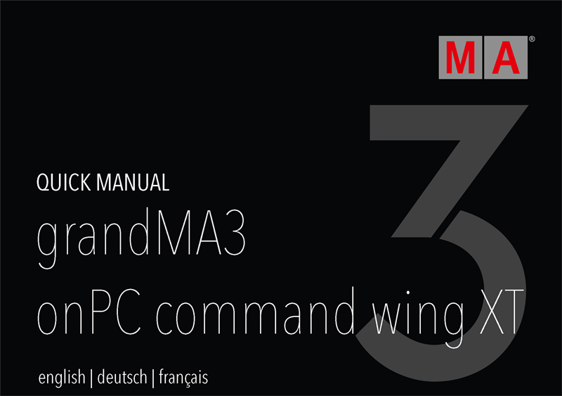 grandMA3 User Manual Publication grandMA3 Quick Manual onPC command wing XT grandMA3 Quick Manual onPC command wing XT Sub topicsIntended UseSafetySupportTransportLimitationsQuick StartMaintenanceDisposalTechnical DataHardware-related InstancesDeclaration of Conformity