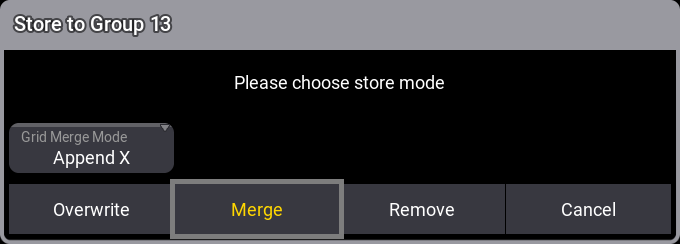 When Grid Merge Mode is set to Append X (the default setting), the selected fixtures will be added to the next available X coordinate.