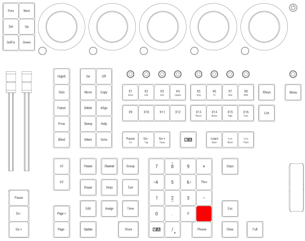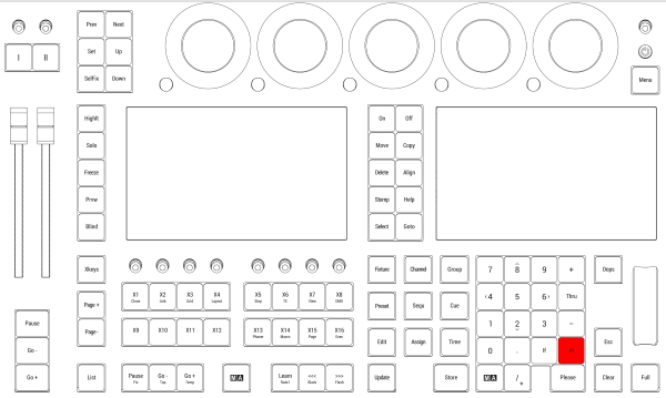 Pressing At At executes the Normal keyword in the command line in the selected fixtures.